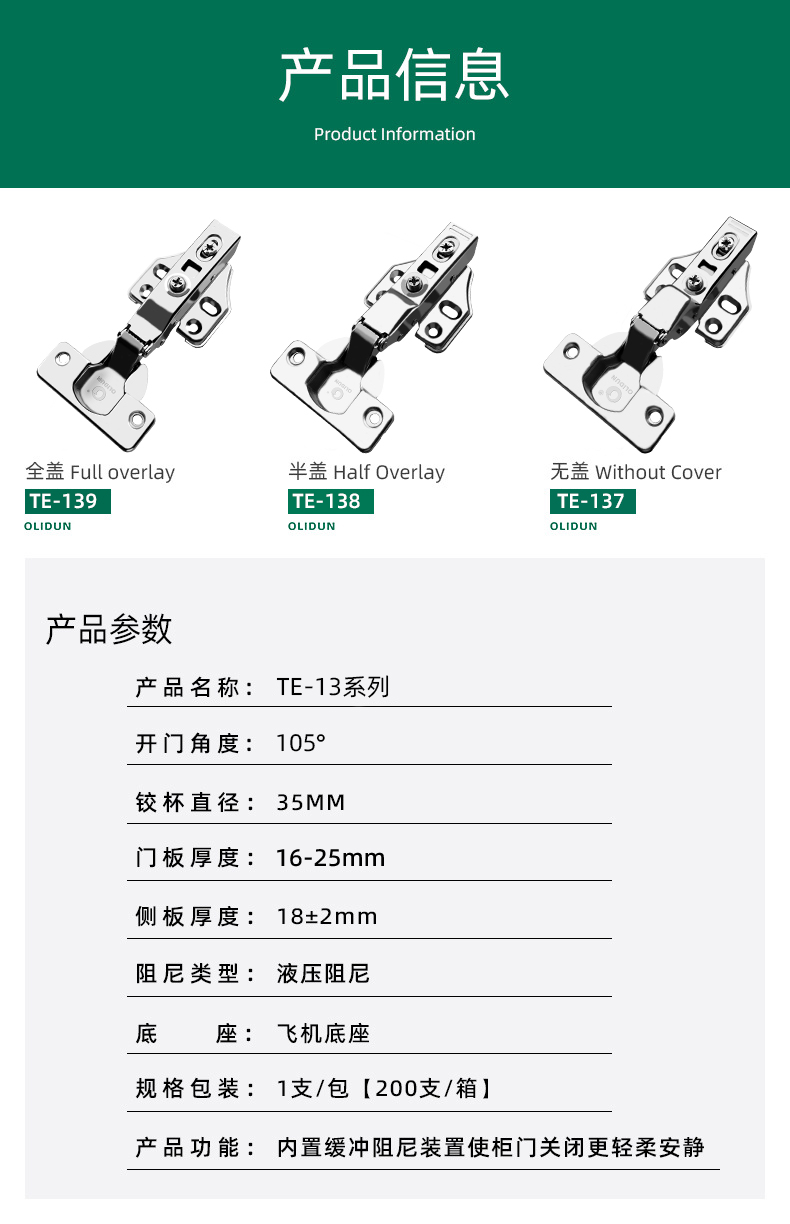 三段力厚门阻尼铰链TE13系列