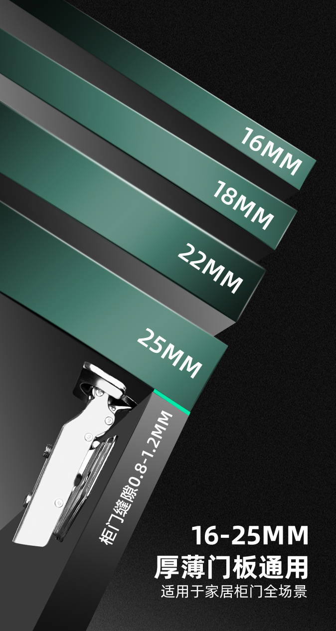 产品描述:专为橱柜、衣柜、卫浴柜等家具设计,以三段力值精准调控与液压阻尼技术,实现开得顺畅、停得稳固、关得静音,兼顾承重、安全与耐用,适配各类家装与定制家具场景。