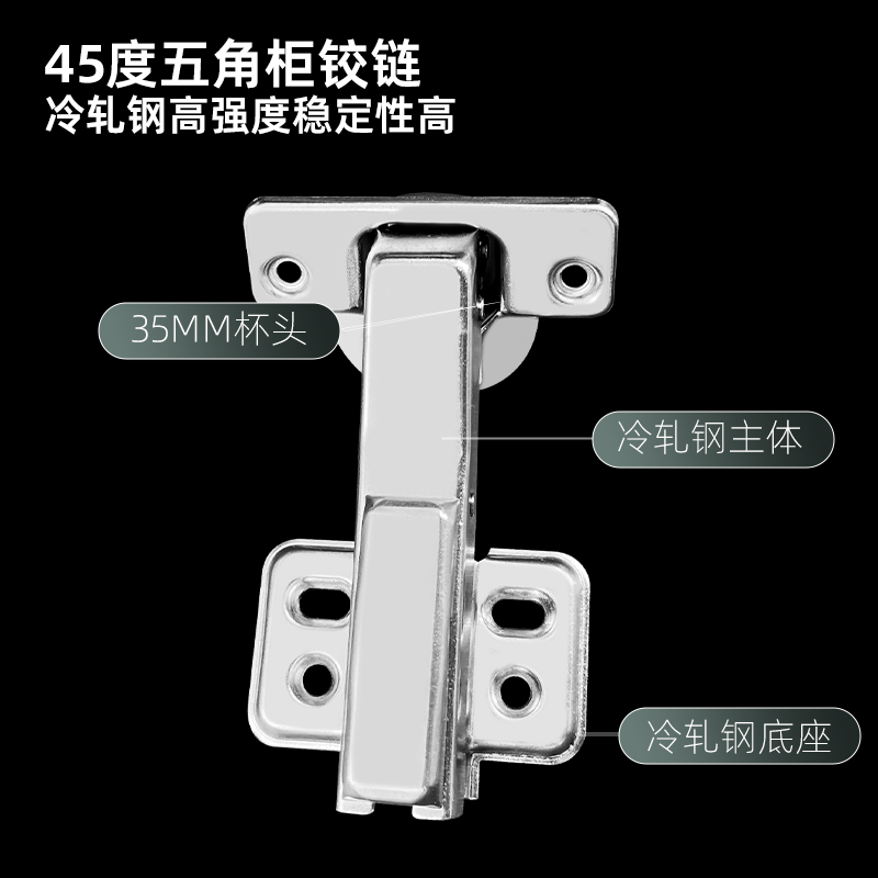 产品描述:专为转角柜、联动门、异形柜体设计的 135° 阻尼液压铰链,解决转角柜门开合受限、安装偏差难调、闭合异响等痛点。
